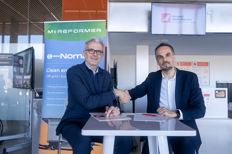 The Lleida-Alguaire Airport has conducted the first flight tests using electric power generated by the Nomad system. This mobile charging station, developed by the Catalan company Methanol Reformer SL, is capable of transforming renewable methanol—produced sustainably—into hydrogen or electricity. As a result, the unit functions as a mobile hydrogen refueling station or charging point.